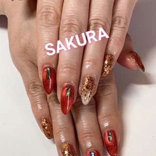 オレンジラメエスニックネイル Yucca Nail ネイルデザイン集